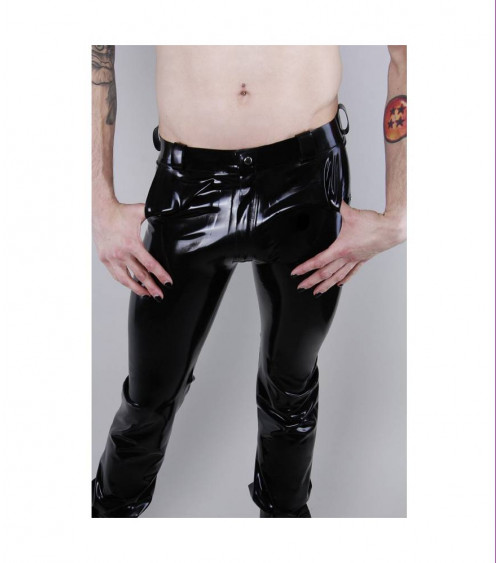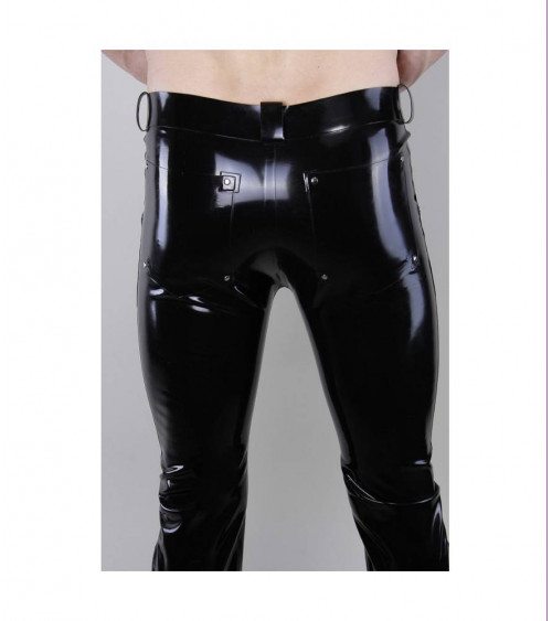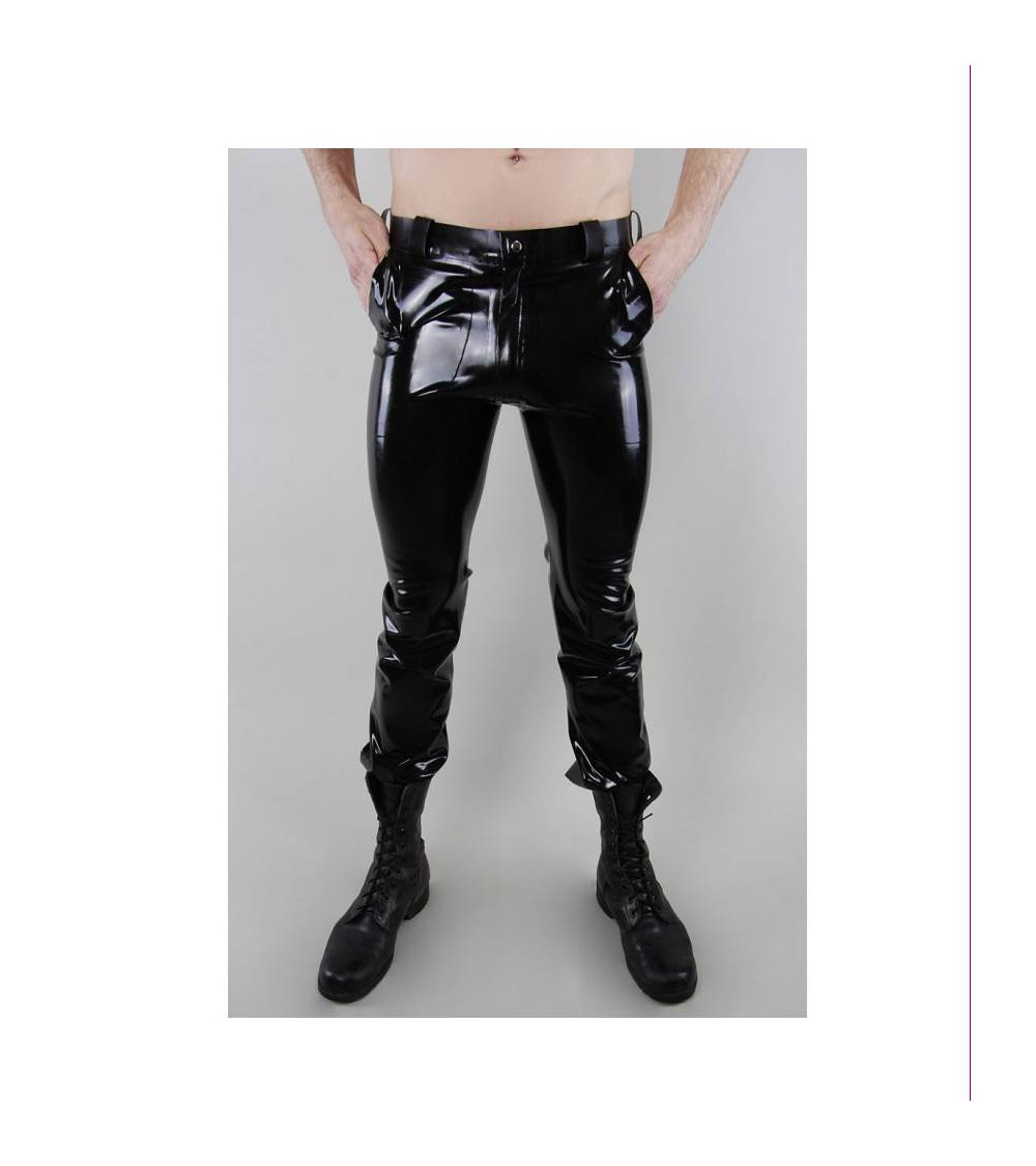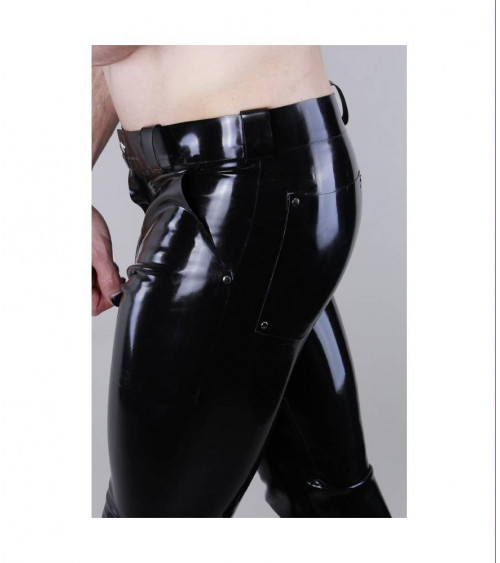 These jeans are made from 0.5mm latex, and they feel awesome. Fitted with front pockets and two pockets on the back. The jeans have belt loops and a zip fly.