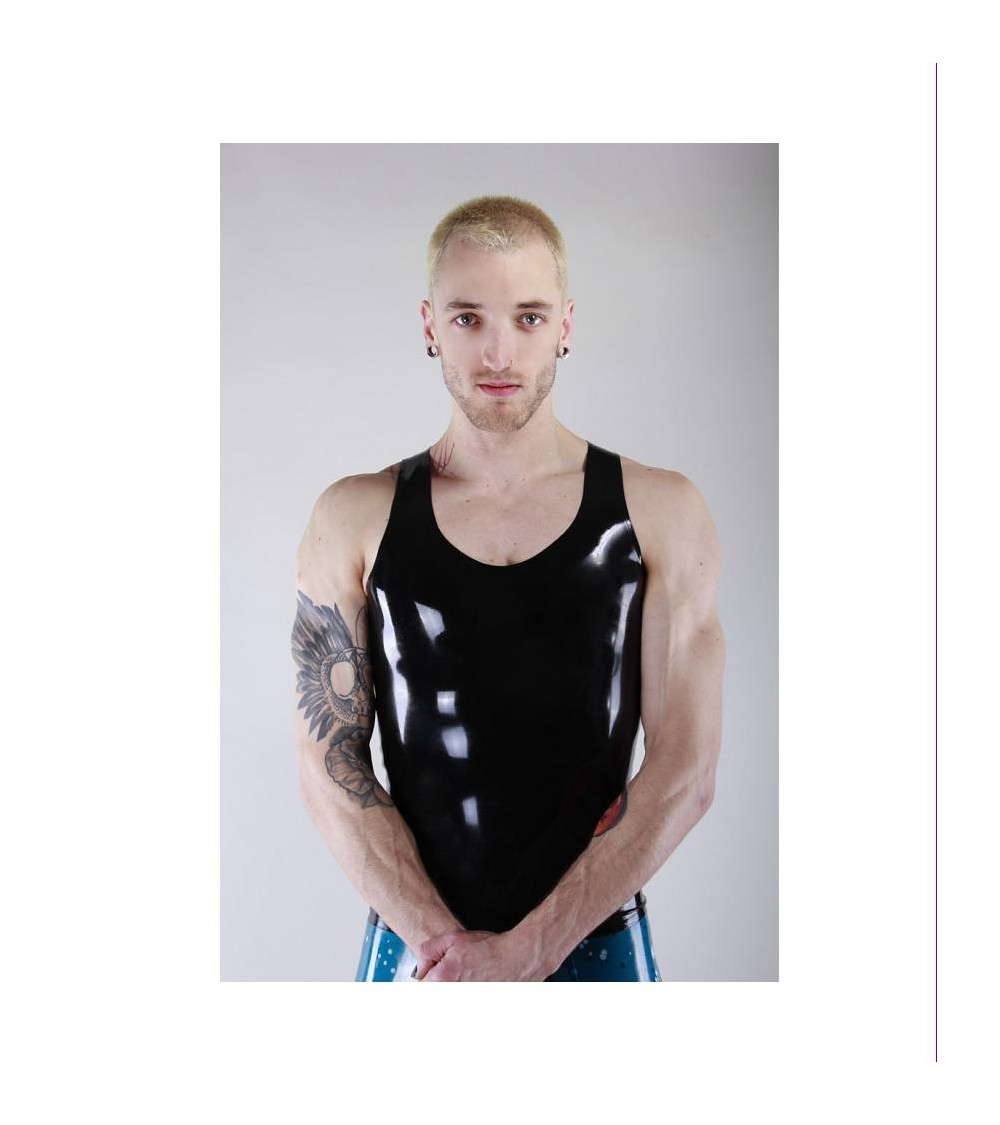 Our latex vest is cut to show off your body, especially the arms and shoulders. Made of 0.5 mm latex, this top is 100% rubber and without a zip for a super smooth silhouette.