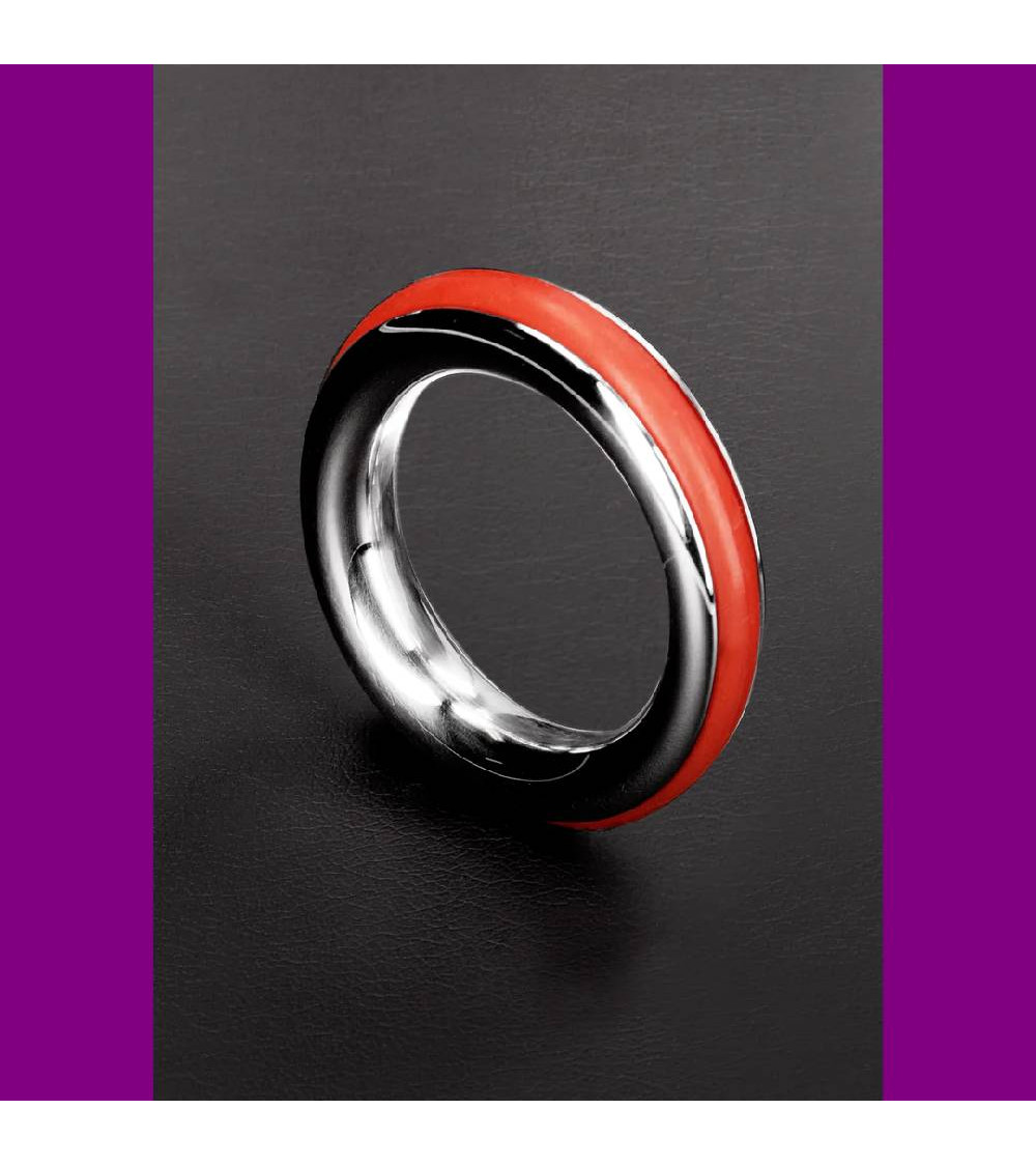 Made from Stainless Steel, this cockring is designed with comfort and style in mind The Cockring has Inlay Silicon Rubber Rings. In the colors: Red, Black, Blue and Yellow. This ring will help prolong your erection and add some flare at the same time.
